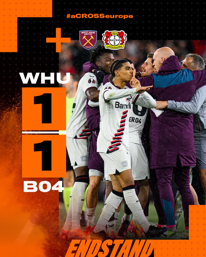 Απλά δεν χάνει πουθενά η Μπάγερ Λεβερκούζεν. Οι «ασπιρίνες» πήραν ισοπαλία 1-1 μέσα στην έδρα της Γουέστ Χαμ και σε συνδυασμό με τη νίκη της στο πρώτο ματς με 2-0, πέρασε στα ημιτελικά. Απίθανο αήττητο σερί της Λεβερκούζεν σε όλες τις διοργανώσεις.