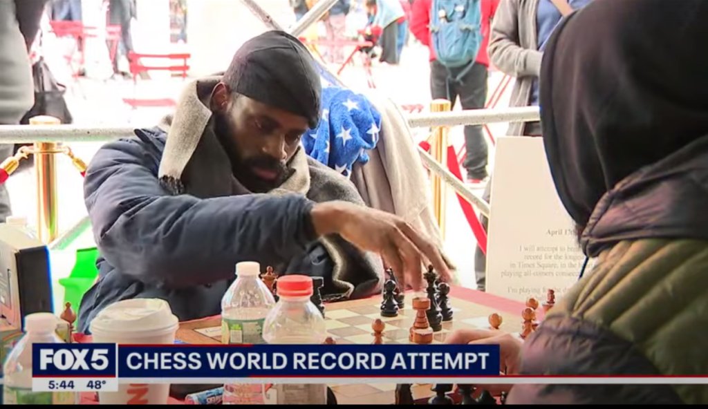 Ένας Νιγηριανός Master έπαιξε ασταμάτητα σκάκι επί 58 ώρες στην Τάιμς Σκουέρ της Νέας Υόρκης προκειμένου να καταρρίψει το παγκόσμιο ρεκόρ Γκίνες για τον μεγαλύτερο μαραθώνιο σκακιού και να συγκεντρώσει ένα εκατομμύριο δολάρια για την εκπαίδευση των παιδιών στην Αφρική.