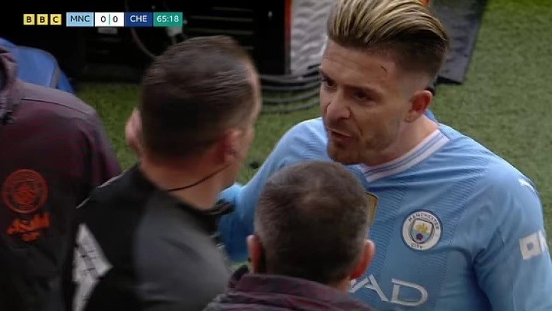 Έτσι λοιπόν, βγαίνοντας από τον αγωνιστικό χώρο, ο Άγγλος ακραίος επιθετικός της Μάντσεστερ Σίτι εξέφρασε, σε έντονο ύφος, τα παράπονά του προς τον τέταρτο διαιτητή.