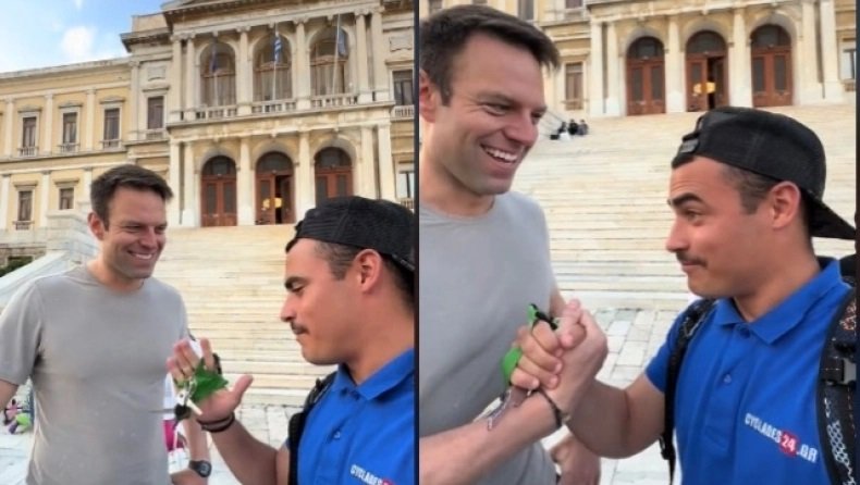 Ο πρόεδρος του ΣΥΡΙΖΑ, Στέφανος Κασσελάκης, βρέθηκε σήμερα στη Σύρο στο πλαίσιο της περιοδείας του σε 27 νησιά του Αιγαίου. Εκεί, συνάντησε τον γνωστό TikToker και φίλαθλο του Παναθηναϊκού, Μιχάλη Κονδύλα.
