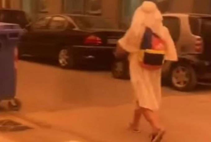 Ο 14χρονος, βλέποντας τον ουρανό να έχει βαφτεί πορτοκαλί και το σκηνικό να θυμίζει... έρημο, φόρεσε μια κελεμπία για να προστατευτεί από το φαινόμενο και βγήκε στους δρόμους, με τους περαστικούς να κοιτάζουν με... περιέργεια.