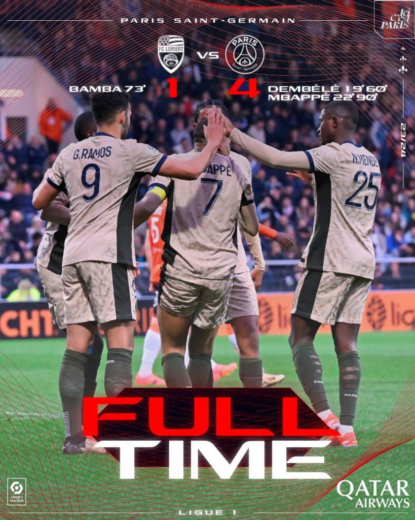 Η Παρί πέρασε με 4-1 από την έδρα της Λοριάν, βρέθηκε στο +14 από τη Μονακό, η οποία αν δεν κερδίσει απόψε θα δώσει και μαθηματικά τον τίτλο στην ομάδα του Λουίς Ενρίκε. Στην προτελευταία θέση παρέμεινε η Λοριάν και στένεψαν τα περιθώρια.