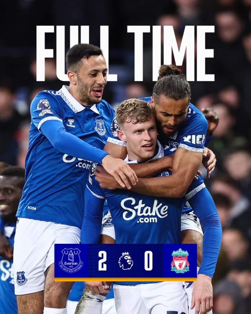 Η Έβερτον σόκαρε τη Λίβερπουλ καθώς την κέρδισε με 2-0 στο ντέρμπι του Μέρσεϊσαϊντ και ουσιαστικά την έθεσε εκτός τίτλου. παράλληλα τα «ζαχαρωτά» έκαναν άλμα παραμονής.