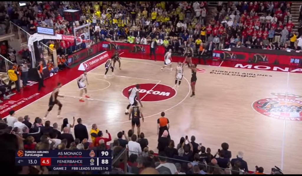 Με μεγάλο τρίποντο του Λόιντ, έντεκα δευτερόλεπτα πριν από το φινάλε, η Μονακό νίκησε 93-88 τη Φενέρμπαχτσε και ισοφάρισε σε 1-1 τη σειρά. Στο Πριγκιπάτο, οι γηπεδούχοι είχαν εντυπωσιακό ξεκίνημα, απέκτησαν προβάδισμα 16 πόντων, πριν από τη λήξη της πρώτης περιόδου, αλλά, οι φιλοξενούμενοι να βρίσκουν απαντήσεις από την περιφέρεια και να μειώνουν για το 54-50 του ημιχρόνου. Στο τρίτο δεκάλεπτο, η Φενέρ ήταν καλύτερη και μπήκε στη τελευταία περίοδο, προηγούμενη 65-74. Τελικά, με τον Οκόμπο να πετυχαίνει κρίσιμα καλάθια και τον Λόιντ να βάζει καθοριστικό τρίποντο, η Μονακό νίκησε 93-88 και πάει στη Κωνσταντινούπολη για να πάρει πίσω το πλεονέκτημα έδρας.
