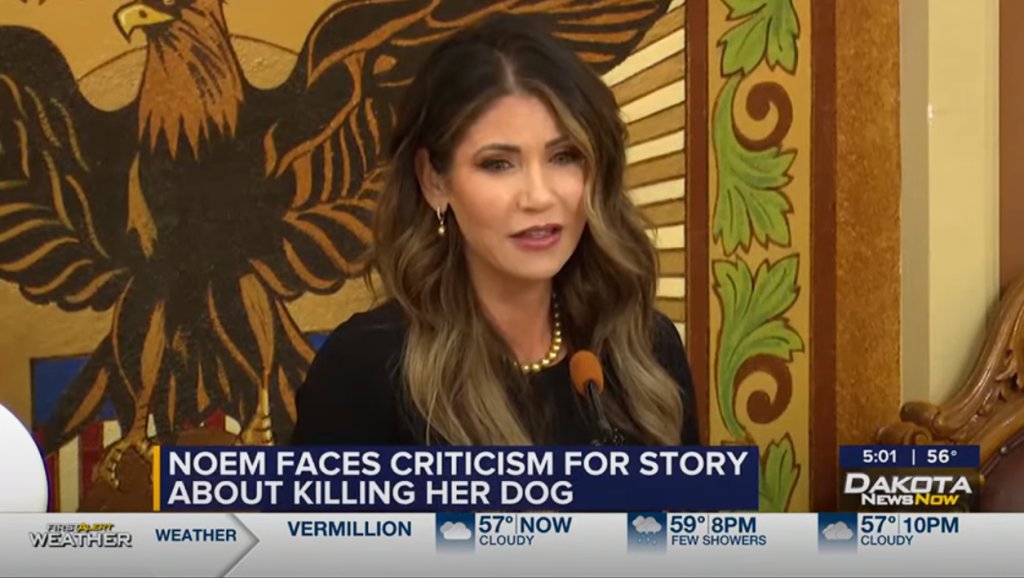 Σε αποσπάσματα που εξασφάλισε η βρετανική εφημερίδα The Guardian, η κυβερνήτρια της Νότιας Ντακότας περιγράφει τη θανάτωση ενός «ανεπίδεκτου εκπαίδευσης» και «επικίνδυνου» σκύλου, ενώ αναφέρει επίσης ότι πυροβόλησε και σκότωσε μια κατσίκα.