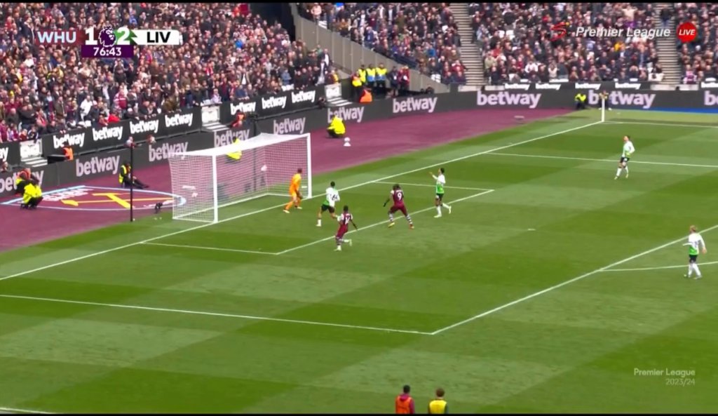 Ο Μοχάμεντ Σαλάχ δεν ξεκίνησε στην αρχική ενδεκάδα, με τη Λίβερπουλ να προσπαθεί να φανεί απειλητική, αλλά, να μην τα καταφέρνει. Όσο περνούσαν τα λεπτά, η Γουέστ Χαμ ισορροπούσε, στάθηκε τυχερή στη φάση του 41ου λεπτού, όταν ο Ντίας σημάδεψε το δοκάρι και, δυο λεπτά αργότερα, άνοιξε το σκορ. Ο Μπόουεν, με έξυπνο αριστερό σουτ, από το ύψος της περιοχής, υποχρέωσε τον Άλισον να διώξει σε κόρνερ και, από τη στατική φάση, ο Άγγλος, με κεφαλιά, σκόραρε για 20η φορά τη φετινή αγωνιστική περίοδο για το 1-0. Έτσι λοιπόν, η Λίβερπουλ βρέθηκε, για 16η φορά στο εφετινό πρωτάθλημα, να δέχεται πρώτη γκολ και για 18η να κυνηγάει στο σκορ.