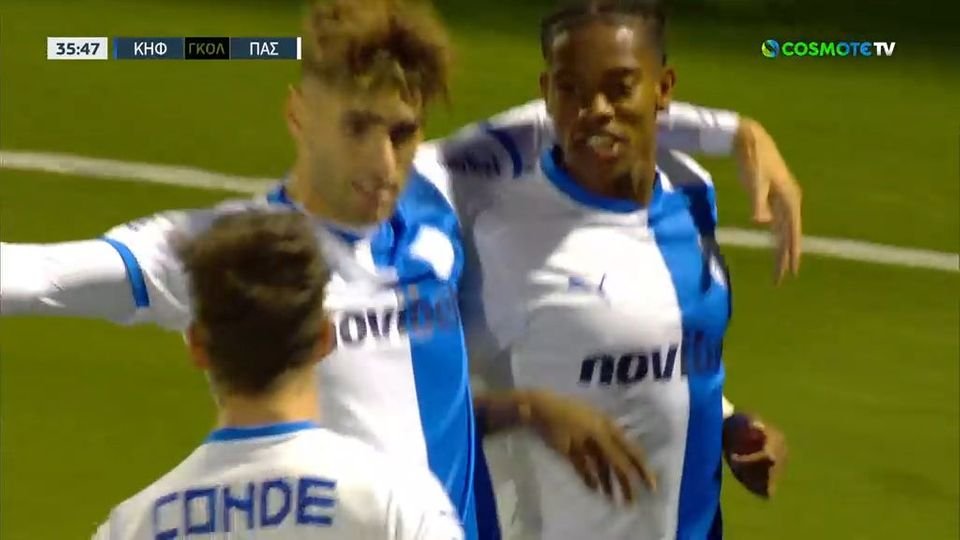 Στο 36’ οι Ροσέρο και Κόντε έκρυψαν την μπάλα με συνεχόμενα τακουνάκια και ο πρώτος πλάσαρε τον Νικοπολίδη για το 1-1