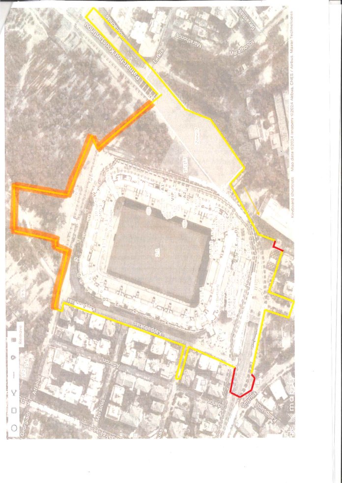 Στην συνεδρίαση της Δημοτικής Επιτροπής της 30/4/24 ζητείται να δοθεί η άδεια για την τοποθέτηση σιδηρών κιγκλιδωμάτων για την ασφαλή διέλευση των φιλάθλων, σε θέσεις που αποτυπώνονται σε σχεδιάγραμμα, από το Σάββατο 25/05/2024. έως την Πέμπτη 30/05/2024.