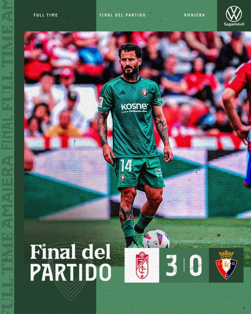 Μπορεί η Γρανάδα να είναι σχεδόν υποβιβασμένη, ωστόσο βάζει δύσκολα στους αντιπάλους της τον τελευταίο καιρό. Μετά την ισοπαλία απέναντι στην Μπιλμπάο την προηγούμενη αγωνιστική, σήμερα κέρδισε με 3-0 την Οσασούνα και ελπίζει ακόμα σε ένα θαύμα για την παραμονή.