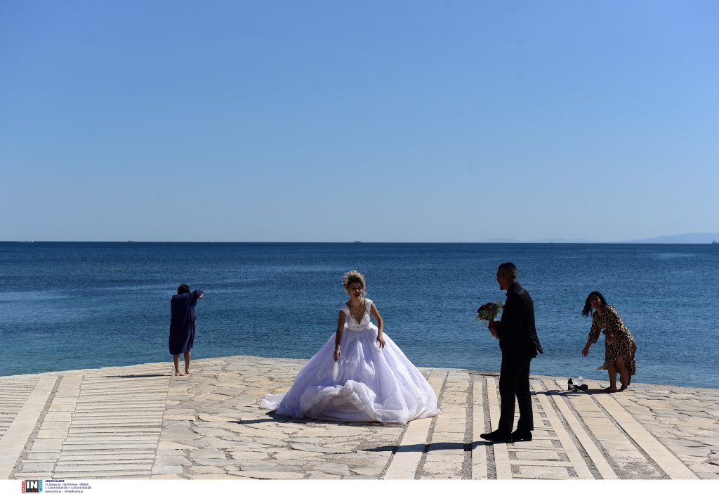 Μάλιστα, στην παραλία του Φαλήρου εμφανίστηκε και μια νύφη με τον γαμπρό για να βγάλουν τις γαμήλιες φωτογραφίες τους!