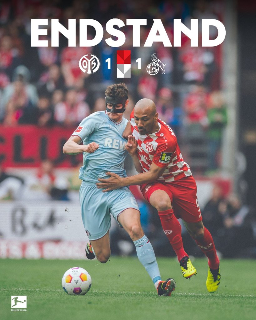 Στο «Χ» το ντέρμπι παραμονής της Bundesliga! Μάιντς και Κολωνία αναδείχθηκαν ισόπαλες 1-1 για την 31η αγωνιστική και αμφότερες παρέμειναν χαμηλά στη βαθμολογία. Στην 16η θέση και στα μπαράζ οι γηπεδούχοι, μόνο μαθηματικές είναι πλέον οι ελπίδες των φιλοξενούμενων για να σώσουν την κατηγορία. Με δέκα τελείωσε την αναμέτρηση η Μάιντς λόγω αποβολής του Εμβουένε στο 90+9’.