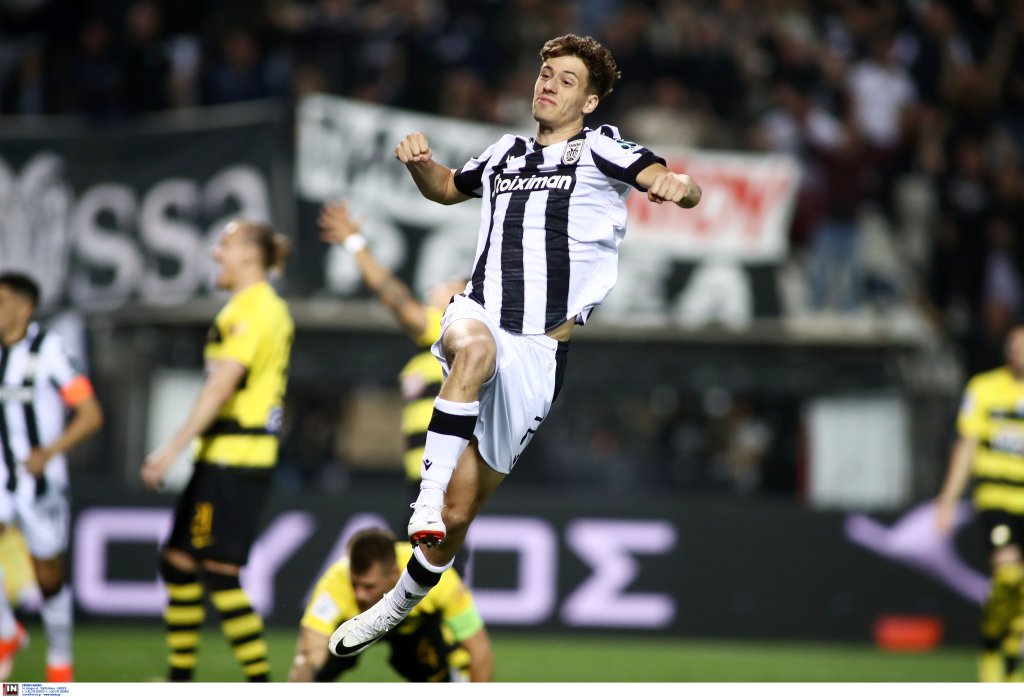 Στο 81ο λεπτό. Δεν έδιωξε καλά ο Κάλενς, πήρε ύψος η μπάλα μεσα στην περιοχή της ΑΕΚ και δεξιά, δεν έδιωξε κανείς εγινε η κεφαλιά στρώθηκε στον Κωνσταντέλια σουτ και 2-2