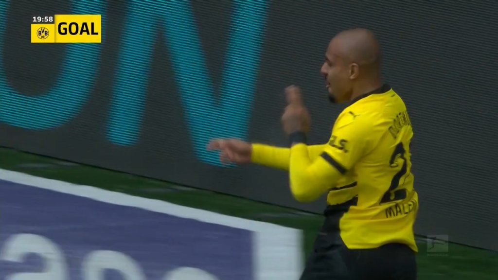 Στο τέταρτο λεπτό, ο Μουκόκο εκμεταλλεύτηκε σύγχυση, στην άμυνα της Άουγκσμπουργκ, και, με τακουνάκι, άνοιξε το σκορ, με τον 19χρονο να μην υποδεικνύεται σε θέση οφσάιντ, αφού η μπάλα έφτασε σε αυτόν, από αντίπαλο, και, έτσι, σκόραρε για πρώτη φορά, ευρισκόμενος στη βασική ενδεκάδα της Ντόρτμουντ. Στο 19', η Άουγκσμπουργκ απείλησε με ισοφάριση, σε σουτ του Μάιερ, αλλά, ένα λεπτό αργότερα, βρέθηκε πίσω στο σκορ με δυο γκολ διαφορά. Από τα αριστερά, ο Μπινόε-Γκίτενς έβγαλε σέντρα και ο Μάλεν, στο δεύτερο δοκάρι, με κεφαλιά, νίκησε τον γκολκίπερ της Άουγκσμπουργκ, κάνοντας το 2-0. Η Ντόρτμουντ κυριαρχούσε, έχασε ευκαιρία με τον Μουκόκο, στο 26', τρία λεπτά αργότερα, ο Μάλεν νικήθηκε, σε τετ α τετ, από τον τερματοφύλακα της Άουγκσμπουργκ, αλλά, στο κόρνερ που ακολούθησε, ο Μουκόκο έσπρωξε την μπάλα στην ανυπεράσπιστη εστία, για το 3-0, φτάνοντας τα πέντε γκολ στη σεζόν. Στο 32ο λεπτό, σε φάση διαρκείας στα καρέ της Ντόρτμουντ, ο Βάργκας μείωσε, για λογαριασμό της Άουγκσμπουργκ, όμως, οι γηπεδούχοι έφτασαν και σε τέταρτο γκολ, πριν από τη λήξη του ημιχρόνου. Ο αρχηγός Μάρκο Ρόις πέρασε την μπάλα πάνω από τον τερματοφύλακα και, μέσα σε αποθέωση, έκανε το 4-1.