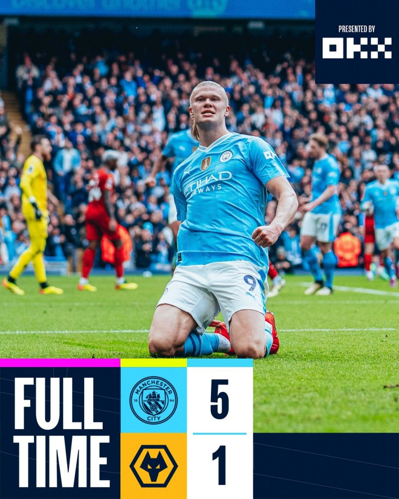 One man show από τον Έρλινγκ Χάαλαντ! Η Μάντσεστερ Σίτι, έχοντας σε σπουδαίο βράδυ τον Νορβηγό(4 γκολ), φιλοδώρησε με πέντε τέρματα την Γουλβς(5-1) για την 36η αγωνιστική της Premier League και επέστρεψε στο -1 από την Άρσεναλ, έχοντας μάλιστα και παιχνίδι λιγότερο από την ομάδα του Μικέλ Αρτέτα. Έφτασε τα 25 γκολ στο φετινό πρωτάθλημα, τα 36 συνολικά και τα εννιά χατ-τρικ στο Νησί ο «Βίκινγκ»! Γιόρτασε με γκολ τις 100 εμφανίσεις του με τους «πολίτες» ο Χούλιαν Άλβαρες.