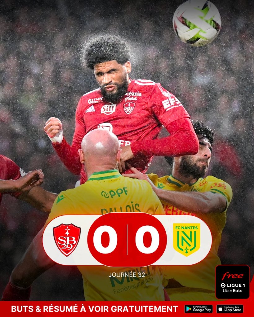 Μια εβδομάδα μετά τη νίκη, με το εντυπωσιακό 5-4, στην έδρα της Ρεν, η ευχάριστη έκπληξη του εφετινού πρωταθλήματος, η Μπρεστ, άφησε δυο βαθμούς με το, εντός έδρας, 0-0. Πλέον, παραμένει τρίτη, αλλά, η Λιλ, με νίκη τη Δευτέρα, θα βρεθεί εκείνη στη τρίτη θέση.