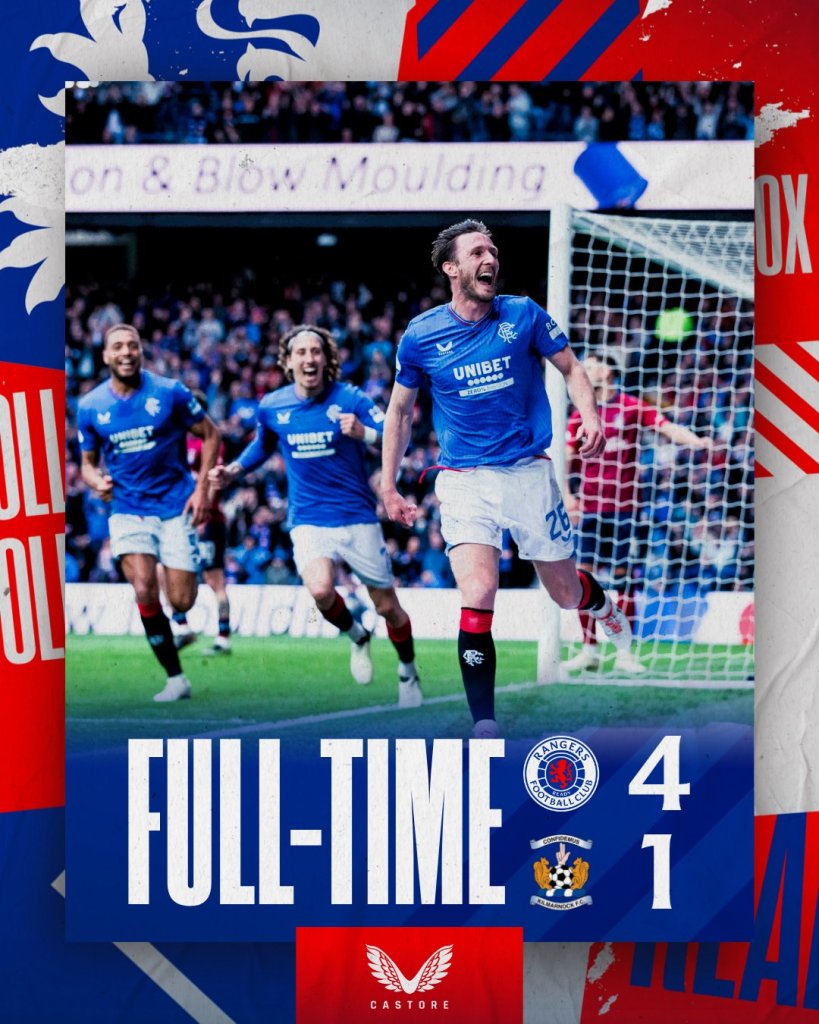 Τα βρήκε σκούρα για ένα ημίχρονο η Ρέιντζερς αλλά κατόρθωσε να μην πέσει σε «ύφαλο» απέναντι στην Κιλμάρνοκ και να πετύχει τη νίκη με 4-1, που την κρατάει στο κόλπο του πρωταθλήματος.