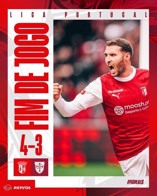 Σε ένα απίθανο παιχνίδι στο «Municipal», η Μπράγκα, η οποία έπαιζε με δέκα ποδοσφαιριστές από το 76ο λεπτό λόγω αποβολής του Τζαλό, επικράτησε 4-3 της Κάζα Πία με ανατροπή στην…ανατροπή και επέστρεψε στο -1 από την Πόρτο.