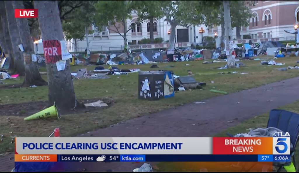 Η αστυνομία μπήκε στον καταυλισμό στο USC περίπου στις 05:00 το πρωί (τοπική ώρα, 15:00 ώρα Ελλάδας) και σε συνεργασία με την υπηρεσία Δημόσιας Ασφάλειας του πανεπιστημίου απομάκρυνε τις σκηνές που είχαν στηθεί, ενώ δεκάδες φοιτητές αποχώρησαν ειρηνικά από το σημείο.
