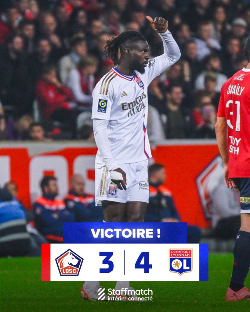 Στο 21ο λεπτό ο Ντιακιτέ άνοιξε το σκορ για τη Λιλ ενώ στο 37’ ο Ζεγκρόβα έγραψε το 2-0. Η Λιόν μείωσε στο 65ο λεπτό με τον Μπενραχμά και στο 82’ ο Φοφανά ισοφάρισε σε 2-2 αλλά τρία λεπτά μετά ο Ντιακιτέ έγραψε το 3-2. Κι όμως στο 88ο λεπτό ο Λακαζέτ έκανε το 3-3 και στο 90+2’ ο Μπαλντέ έγραψε το 3-4.