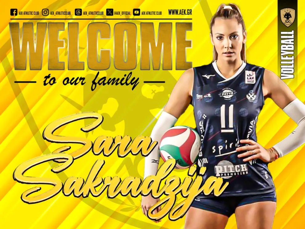 «Η ΑΕΚ βρίσκεται στην πολύ ευχάριστη θέση να ανακοινώσει την έναρξη της συνεργασίας της με την Σάρα Σακραντζίγια. Η Σέρβα αθλήτρια είναι γεννημένη στις 5 Μαρτίου του 1994 και θα ενισχύσει το τμήμα Βόλεϊ Γυναικών της ΑΕΚ.