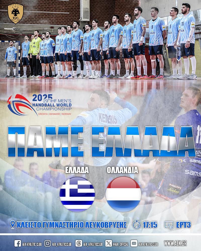 Η Εθνική ομάδα χάντμπολ αντιμετωπίζει την Ολλανδία για τα μπαράζ του Παγκοσμίου Πρωταθλήματος Ανδρών του 2025 (7/05) στο ΔΑΚ Λευκόβρυσης Κοζάνης και η Ερασιτεχνική έστειλε μήνυμα στήριξης. «Είμαστε μαζί σας! Πάμε!».