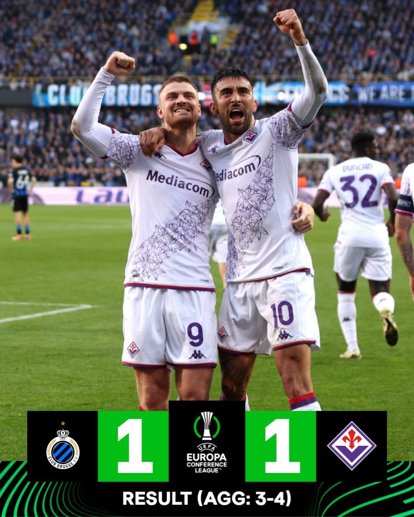 Στον τελικό του Conference League η Φιορεντίνα για 2η διαδοχική χρονιά. Οι «βιόλα» έσπασαν τα δοκάρια μέσα στην έδρα της Μπριζ αλλά στο τέλος απέσπασαν ισοπαλία 1-1 και μαζί το εισιτήριο για τον τελικό της «Αγιά Σοφιάς» καθώς είχαν νικήσει με 3-2 στο πρώτο ματς.