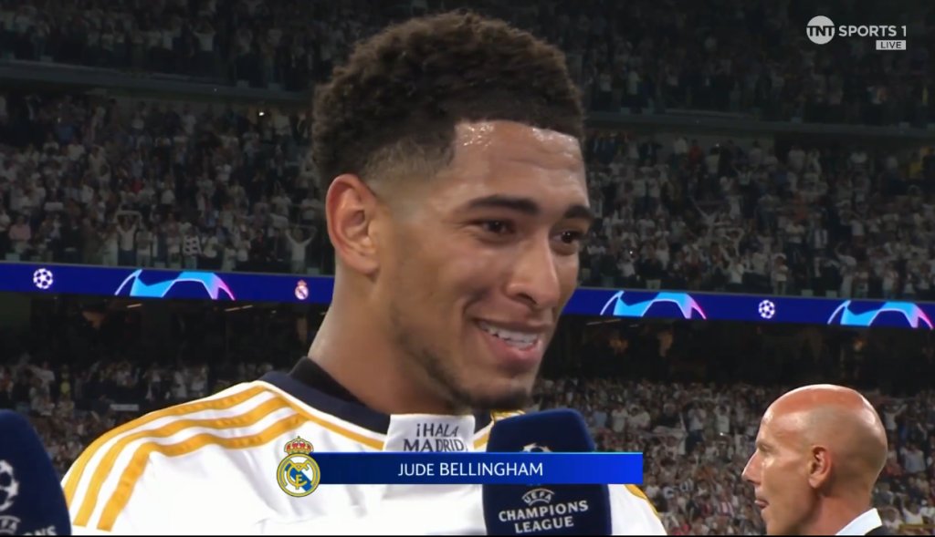 Φορώντας φανέλα που έγραφε "Πάμε για το 15ο", ο Μπέλινγκχαμ μίλησε στο TNT Sports και είπε πως "κοίταγα γύρω μου [πριν από το παιχνίδι] και σκέφτηκα: δεν θα μπορούσα να είμαι σε καλύτερη θέση, με καλύτερους ανθρώπους. Πού αλλού θα προτιμούσατε να είστε; Ήμουν επτά στο Μπέρμιγχαμ και ονειρευόμουν τέτοιες νύχτες. Το να φτάσω εδώ και να θέλω να είμαι κάπου αλλού, δεν έχει νόημα για μένα. Είμαι πολύ χαρούμενος που βρίσκομαι εδώ. Αισθάνομαι σαν οικογένεια, οι παίκτες αισθάνονται σαν οικογένεια, οι οπαδοί νιώθουν σαν οικογένεια".
