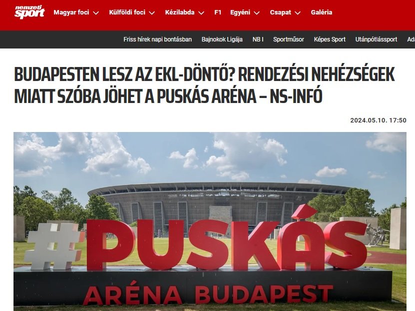 Δημοσίευμα της Nemzeti (κορυφαίο αθλητικό Μέσο της Ουγγαρίας) τονίζει ότι είναι πιθανό ο Τελικός του Conference League να μην γίνει τελικά στην Αθήνα και την «Αγιά Σοφιά». Η ουγγρική εφημερίδα επικαλείται ελληνικές πηγές σύμφωνα με τις οποίες οι αρχές στην Ελλάδα δεν μπορούν να εξασφαλίσουν την ασφάλεια εκτός του γηπέδου της ΑΕΚ.