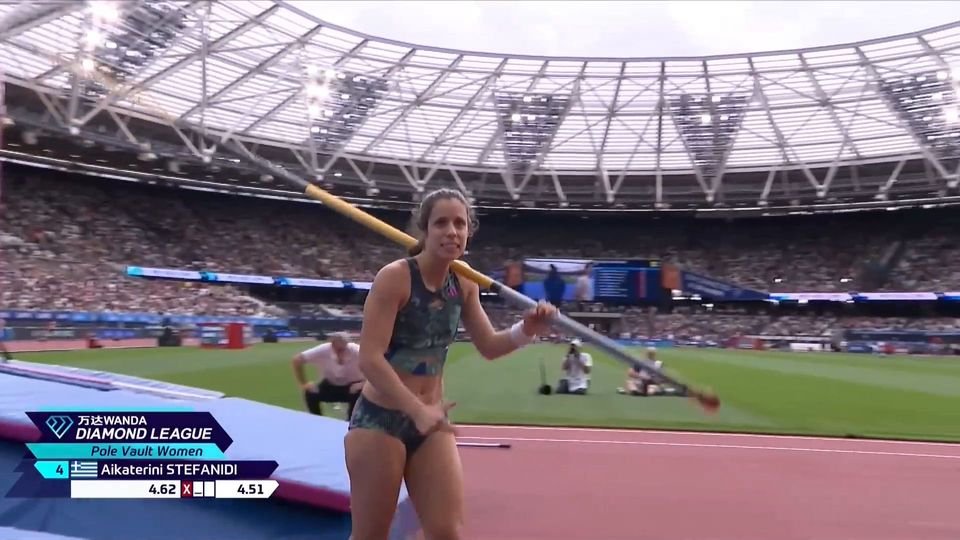 Η Παγκόσμια πρωταθλήτρια του επί κοντώ ξεπέρασε τα 4,63 μ. με την τρίτη προσπάθεια και κατέλαβε την 5η θέση στον αγώνα. Η Στεφανίδη ξεκίνησε τον αγώνα με επιτυχημένο άλμα στα 4,43 μ. και στην συνέχεια ξεπέρασε με την τρίτη προσπάθεια τα 4,53 μ. και τα 4,63 μ. και είχε τρεις άκυρες προσπάθειες στα 4,73 μέτρα. Την πρώτη θέση στο επί κοντώ πήρε η Βρετανίδα Μάλι Κόντερι με 4,73 μέτρα.