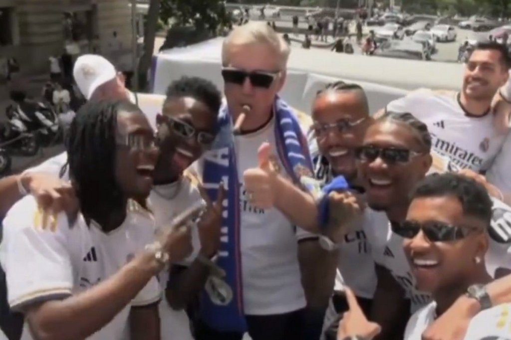 Ο Αντσελότι εμφανίστηκε στη φιέστα, φορώντας γυαλιά ηλίου, αλλά και με πούρο στο στόμα, όπως και στη φιέστα του 2022.