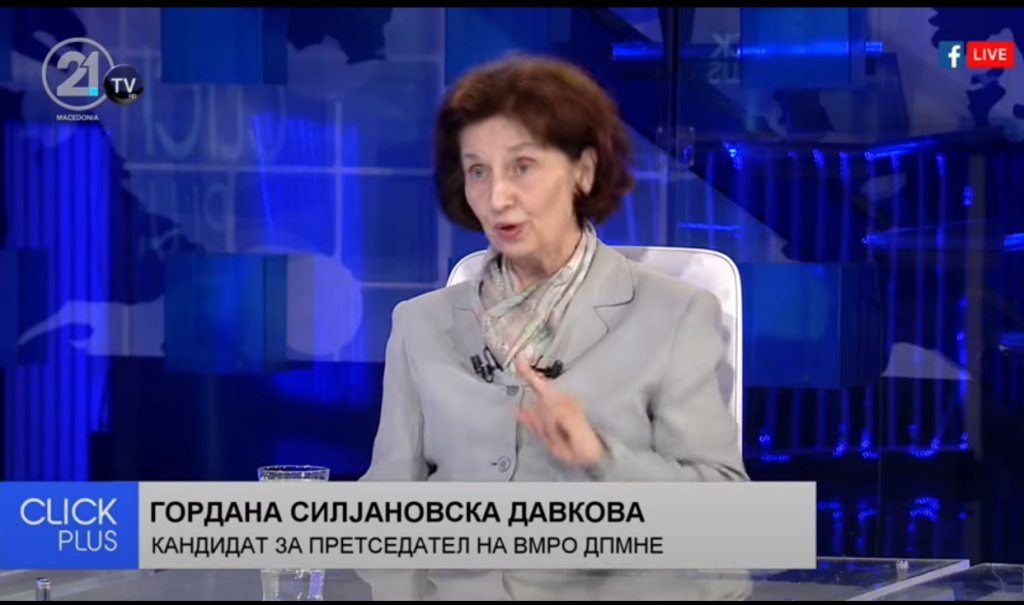 Η 71χρονη Γκορντάνα Σιλιάνοφσκα εξελέγη πρόεδρος των Σκοπίων στον δεύτερο γύρο των προεδρικών εκλογών που διεξήχθη την Τετάρτη 8 Μαϊου, ως υποψήφια του VMRO-DPMNE, επικρατώντας, με ποσοστό 65%, του μέχρι σήμερα προέδρου της χώρας, Στέβο Πεντάροφσκι.