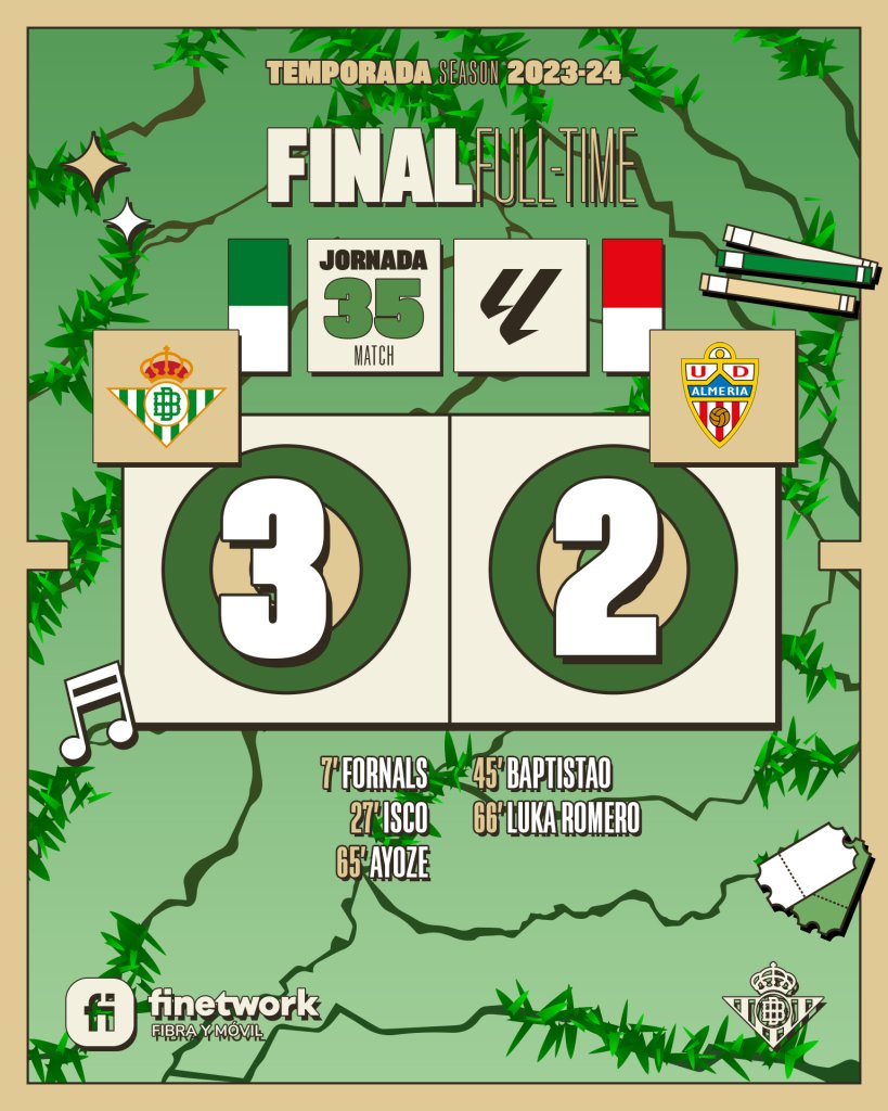 Δύσκολα έβαλε η Αλμερία στην Μπέτις, αλλά η ομάδα του Πελεγκρίνι πήρε με 3-2 την αναμέτρηση και πλέον ουσιαστικά κλείδωσε την παρουσία της στις ευρωπαϊκές διοργανώσεις της επόμενης σεζόν.
