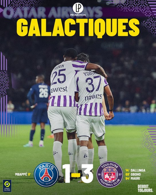 Θρίαμβος της Τουλούζ στο «Παρκ Ντε Πρενς»! Η ομάδα του Κάρλες Μαρτίνεθ πέρασε με 3-1 από την έδρα της Παρί Σεν Ζερμέν για την 33η αγωνιστική της Ligue 1, πήρε διπλό μετά από 16 χρόνια και χάλασε την φιέστα αλλά και το αντίο του σκόρερ Κιλιάν Εμπαπέ!