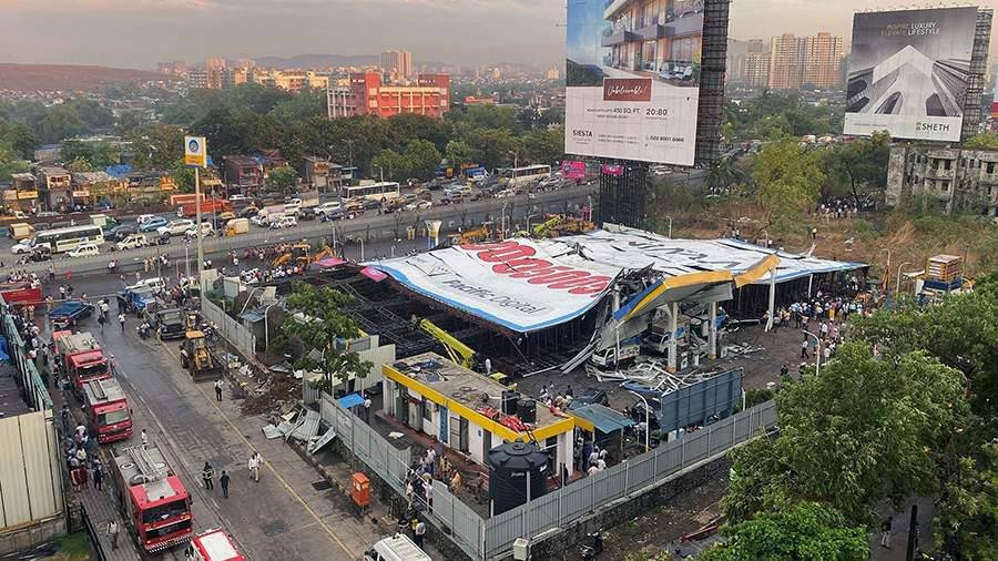 Θυελλώδεις άνεμοι στη Μουμπάι (σ.σ. Βομβάη) της δυτικής Ινδίας προκάλεσαν την κατάρρευση της μεταλλικής πινακίδας, μήκους περίπου 30 μέτρων, πάνω σε πρατήριο καυσίμων στο προάστιο Γκατκόπαρ, στο ανατολικό τμήμα της ινδικής μεγαλούπολης.