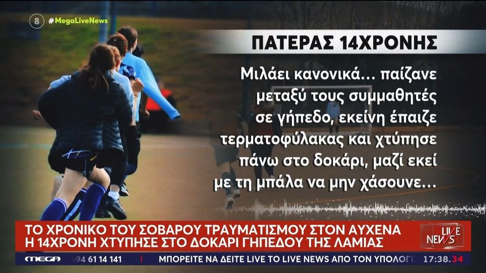 Ιδιαίτερα ευχάριστα είναι τα νέα για την κατάσταση της υγείας της 14χρονης που τραυματίστηκε σοβαρά στον αυχένα παίζοντας ποδόσφαιρο στο γήπεδο Καλυβίων, στη Λαμία.