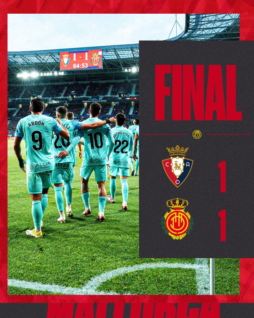 H Μαγιόρκα έφυγε με τον βαθμό(1-1) από την έδρα της αδιάφορης Οσασούνα για την 36η αγωνιστική της La Liga και αγκάλιασε την παραμονή.