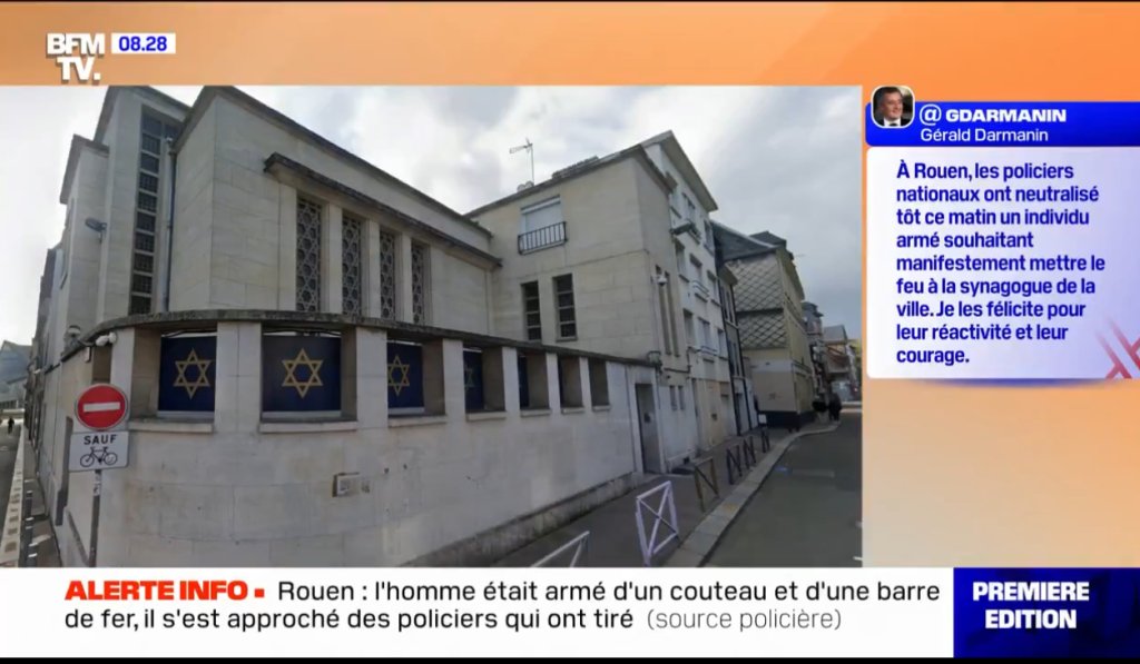 Rouen: un homme armé a été tué par la police après avoir tenté de mettre le feu à une synagogue pic.twitter.com/3UpUkXun3b