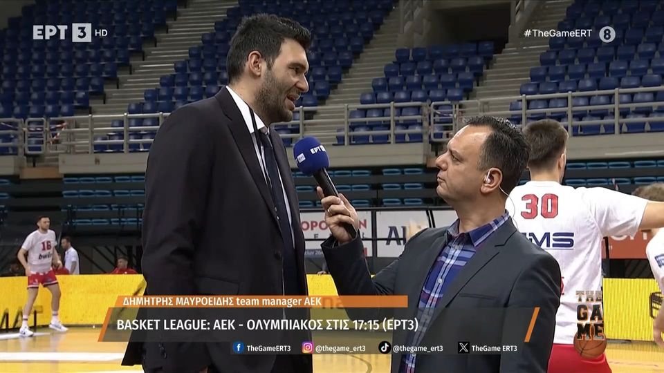 Λίγο πριν το τζάμπολ του αγώνα με τον Ολυμπιακό ο Δημήτρης Μαυροειδής μιλησε στην κάμερα της ΕΡΤ 3. Ο team manager της ΑΕΚ, μιλησε για τη φετινή σεζόν και αφού παραδέχτηκε τις ατυχίες που υπήρξαν φέτος, επισήμανε πως θα κάνουμε τον απολογισμό μας όταν τελειώσουμε τη σεζόν.