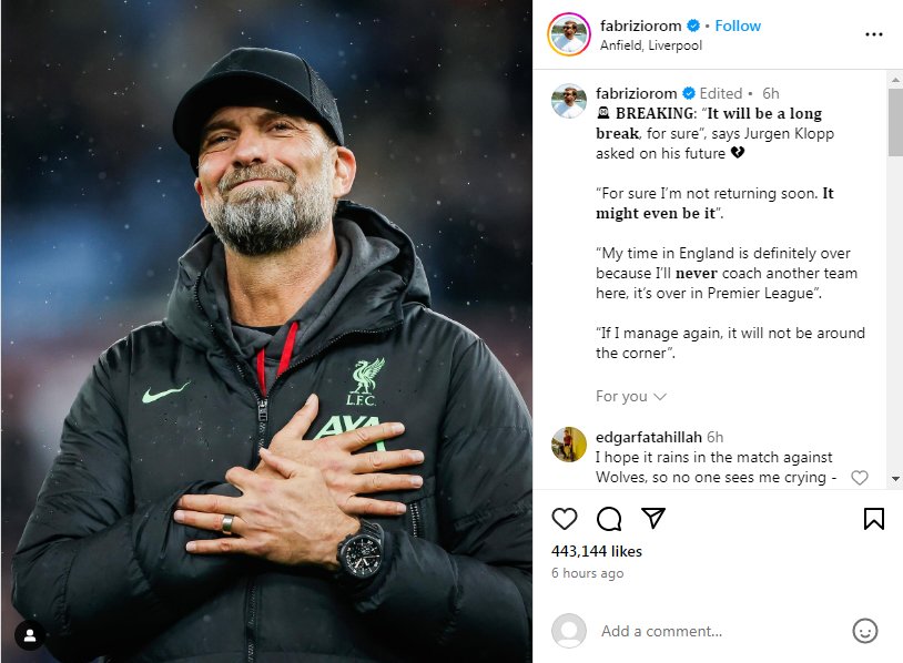 Έπειτα από εννέα χρόνια, διάστημα κατά το οποίο οδήγησε τη Λίβερπουλ σε ένα πρωτάθλημα (2020), ένα Κύπελλο (2022), δύο Λιγκ Καπ (2022, 2024), ένα Community Shield (2022), ένα Champions League (2019) φτάνοντας και σε ακόμη δύο τελικούς, ο Γιούργκεν Κλοπ αποχωρεί από την αγγλική ομάδα.