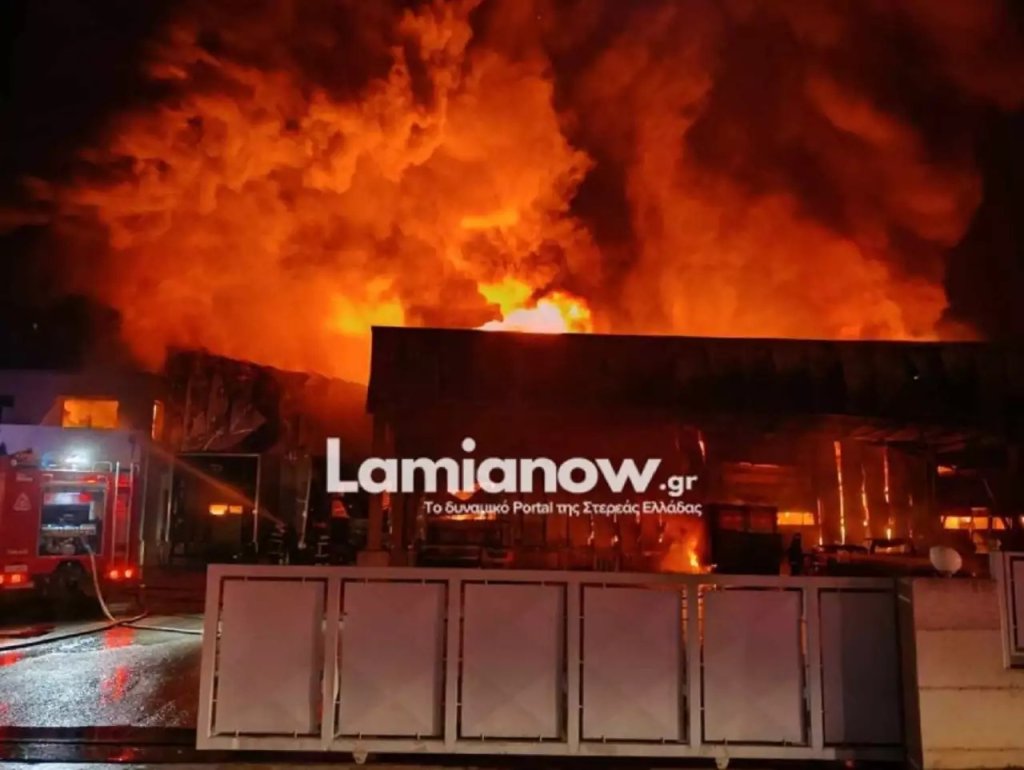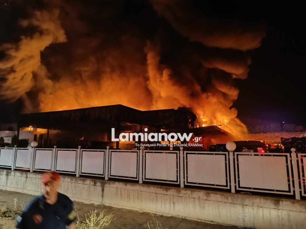 Στις φλόγες παραδόθηκαν λίγο πριν τις 22.00 το βράδυ της Κυριακής οι εγκαταστάσεις της εταιρείας “Γιαννίτσης” στην ΒΙΠΕ Λαμίας. Η καταστροφή είναι ολοκληρωτική για την επιχείρηση μιας και σε λίγο περισσότερο από μια ώρα και παρά τις μεγάλες προσπάθειες των πυροσβεστικών δυνάμεων με 40 πυροσβέστες, 18 οχήματα και ειδικό βραχιονοφόρο η πυρκαγιά πήρε γρήγορα μεγάλες διαστάσεις καταστρέφοντας το κτίριο, αλλά και τα αυτοκίνητα της επιχείρησης που βρισκόντουσαν στον περιβάλλοντα χώρο.