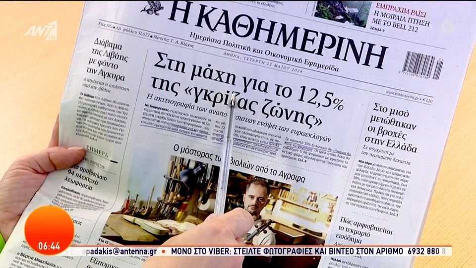 Τα θέματα της ειδησεογραφίας που αναδεικνύονται στον ελληνικό Τύπο, σήμερα 22 Μαΐου.