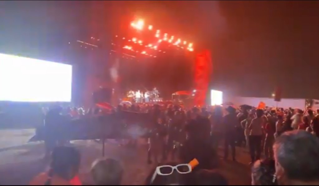 Και ενώ ο καιρός φαίνεται να είναι αρκετά καλός, μέσα σε δευτερόλεπτα ο αέρας δυναμώνει, ξηλώνοντας όλη τη σιδερένια κατασκευή με τα βαριά φώτα, η οποία πέφτει πάνω στους πολιτικούς που βρίσκονταν στη σκηνή και σε όσους πολίτες ήταν κοντά.