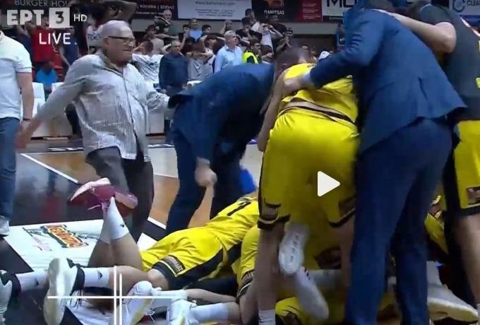 Όμως, κατά τη διάρκεια των πανηγυρισμών, σημειώθηκε ένα αδιανόητο περιστατικό. Ένας άνδρας μεγάλης ηλικίας, που καθόταν στα court seats, κατευθύνθηκε προς το μέρος των παικτών του Άρη και κλώτσησε έναν από αυτούς.