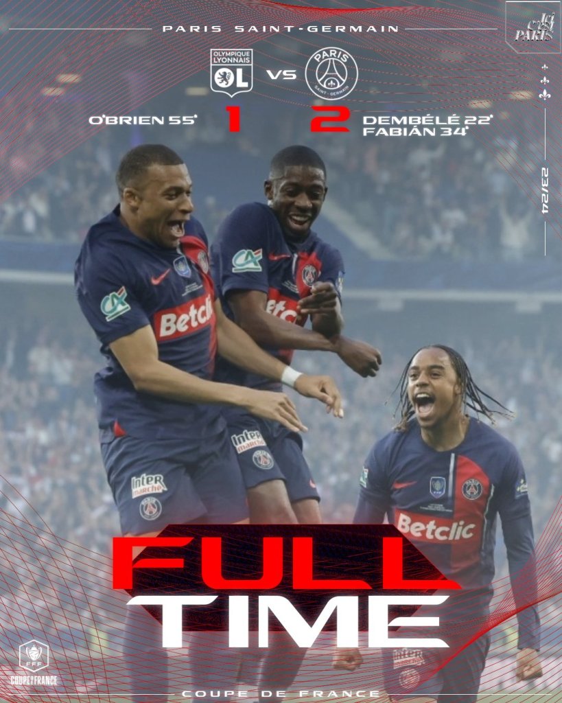 Η Παρί κέρδισε με 2-1 τη Λιόν στο αντίο του Εμπαπέ και σήκωσε και το Κύπελλο Γαλλίας, ολοκληρώνοντας το νταμπλ.