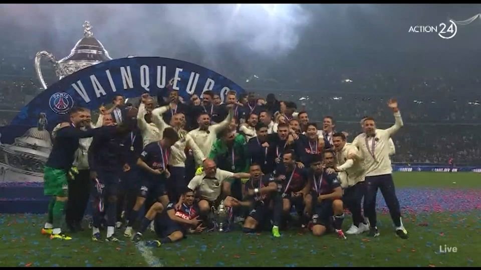 Στο "Πιέρ Μορουά", η Παρί Σεν Ζερμέν νίκησε 2-1 τη Λιόν, στον τελικό του Κυπέλλου Γαλλίας, και στέφθηκε Κυπελλούχος για 15η φορά στην ιστορία της. Στο τελευταίο παιχνίδι του Κιλιάν Εμπαπέ, με τη φανέλα της, η Παρί κατέκτησε το νταμπλ, ανοίγοντας το σκορ, στο 22ο λεπτό, με τον Ντεμπελέ. Δώδεκα λεπτά αργότερα, στο 34', ο Ρουίζ διπλασίασε τα τέρματα, για την ομάδα του Λουίς Ενρίκε, με τη Λιόν να μειώνει, στο 55ο λεπτό, με γκολ που σημείωσε ο Ο'Μπράιεν. Η Παρί κράτησε το προβάδισμα μέχρι το σφύριγμα της λήξης και, μετά το πρωτάθλημα, κατέκτησε και το Κύπελλο Γαλλίας.
