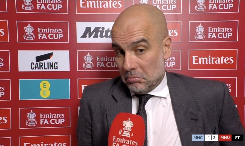 Pep Guardiola reacts to Man City's defeat to Man Utd in the FA Cup final pic.twitter.com/t5A9cNLRKM