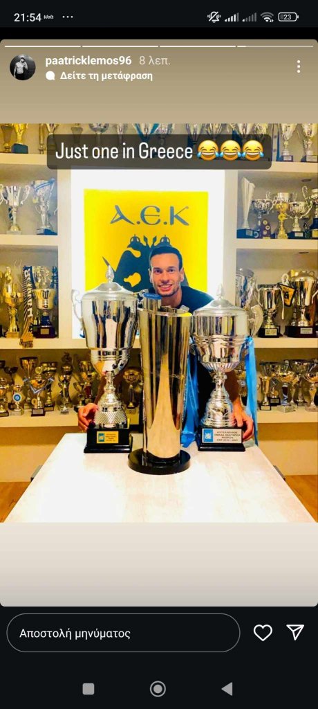 Ο Πάτρικ Λέμος θέλησε να στείλει ένα μήνυμα μετά από τον χαμένο ευρωπαϊκό τελικό του Ολυμπιακού, κόντρα στη Βάλουρ της Ισλανδίας, στο ΣΕΦ, αφού η ομάδα του Πειραιά έχασε στα πέναλτι, το τρόπαιο του EHF European Cup. Ο Βραζιλιάνος πλέι μέικερ της ΑΕΚ λοιπόν, έκανε μία ανάρτηση με story στο προφίλ του, στο Instagram, όπου έγραψε: «Μόνο μία ομάδα στην Ελλάδα». Μαζί ανέβασε και μία φωτογραφία του, όπου είχε αγκαλιά τα τρία τρόπαια που είχε πάρει η Ένωση το 2021, όταν έκανε το νταμπλ στην Ελλάδα, ενώ πήρε και το Ευρωπαϊκό.