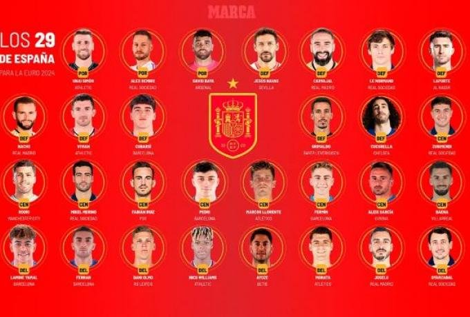 Ο Ντε Λα Φουέντε κάλεσε συνολικά 29 ποδοσφαιριστές, ενόψει των φιλικών αγώνων με την Ανδόρα (5/6 στη Μπανταχόθ) και τη Βόρεια Ιρλανδία (8/6 στη Μαγιόρκα), από τους οποίους θα αποκλειστούν τρεις, προκειμένου να δηλωθεί η τελική 26άδα που θα ταξιδέψει στη Γερμανία.