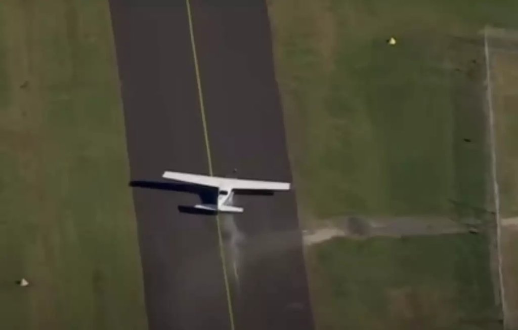 Όπως φαίνεται για λίγα δευτερόλεπτα το αεροπλάνο σέρνεται στο διάδρομο και στη συνέχεια παίρνει μια κλίση το δεξί φτερό του. Ο πιλότος και το άλλο άτομο που επέβαιναν βγήκαν σώοι από το αεροσκάφος την ώρα που διακρίνονται πολλά άτομα να σπεύδουν για βοήθεια