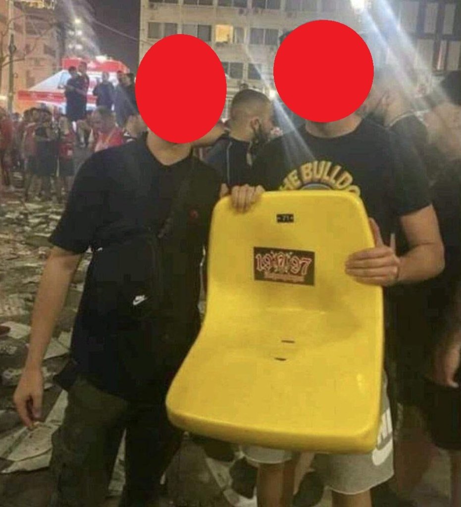 Τα νέα καρεκλάκια που θα μπούνε μπορούνε να είναι ελαφρώς διαφορετικά από τα προηγούμενα. Για παράδειγμα μπορούν να γράφουν την ημερομηνία 29.05.2024 και το ποσοστό των κατεστραμμένων επί του συνόλου των οπαδών του ΟΣΦΠ πχ 7% ΒΑΡΒΑΡΟΙ. Βέβαια θα προτιμούσα να γράφει Γ....αι ο θρύλος και ... αλλά δεν αξίζει σε όλους.